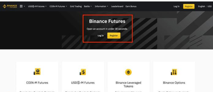 2. 如果您已有币安账户,请点击【登录】,或点击【注册】创建账户。