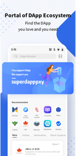 内置的Web3浏览器支持超过2200个完全基于BTC、ETH、EOS、TRON和IOST的去中心化应用程序。您可以直接在钱包中安全、私密地访问和玩最新、最热门的dapp3