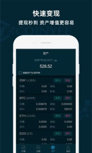 coinyee是一款非常易用的移动数字资产交易服务软件,可以更好地实现数字货币投资和理财,为投资者提供不间断的服务。这里自由交易和投资,安全且支持当前主流币种,任何币种都可以自由选择。有兴趣的朋友不妨下载尝试一下。