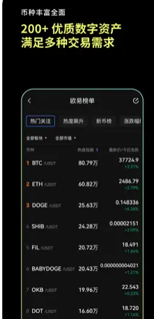 币圈交易所app注册版是专门用于加密货币交易的平台,它们允许用户买入、卖出或交换各种数字货币,如比特币(Bitcoin)、以太坊(Ethereum)、Ripple(XRP)等,以及众多的山寨币和代币。这些交易所扮演着市场中介的角色,为买家和卖家提供一个集中交易的场所,同时提供必要的技术支持和安全保障措施。币圈交易所的核心功能是提供不同加密货币之间的兑换服务。用户可以将一种加密货币换成另一种,或者将加密货币兑换为法定货币(如美元、欧元、人民币等),反之亦然。