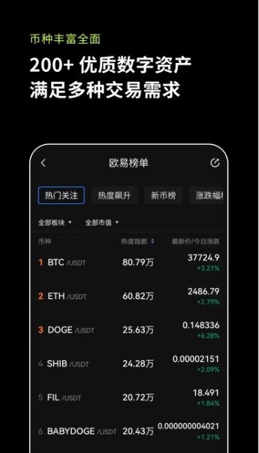 这是一个在线交易软件。该软件提供了超丰富的数字资产区块链和多种不同的虚拟货币资产。用户可以点击此处的操作进行查看,并在栏中选择自己更喜欢的虚拟货币资产。进行交易以获得更多利润。