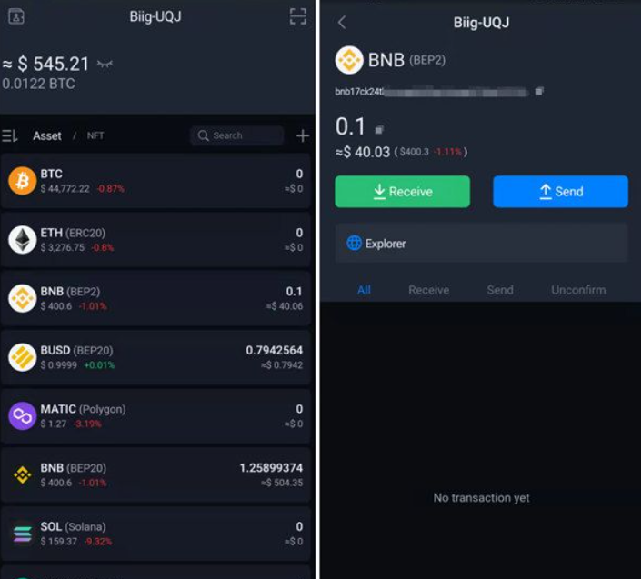打开SafePal应用程序,从资产列表中选择您要发送的币/代币,然后在信息页面上点击“发送”。在本文中,我们将以BNB(BEP2)为例。