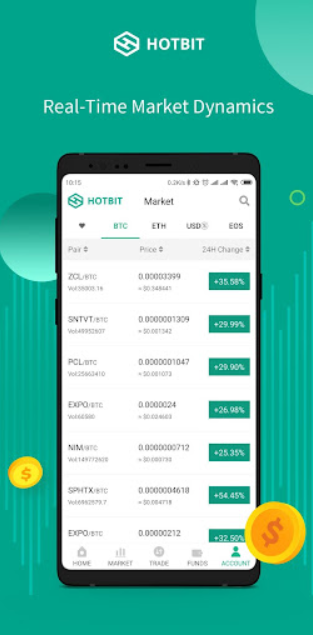 Hotbit Exchange APP是一款非常值得信赖的虚拟货币移动交易平台。该软件可以为用户提供三国链、全球链、雷霆链的不同玩法。用户不仅可以看到非常详细的每日币价实时信息。同时还可以给用户带来各种相关信息!