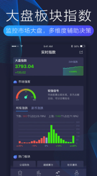 6.独特的板块指数,按照不同概念分类,更好地把握市场走势,挖掘币值。