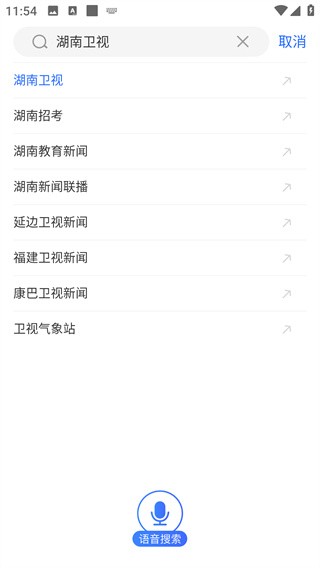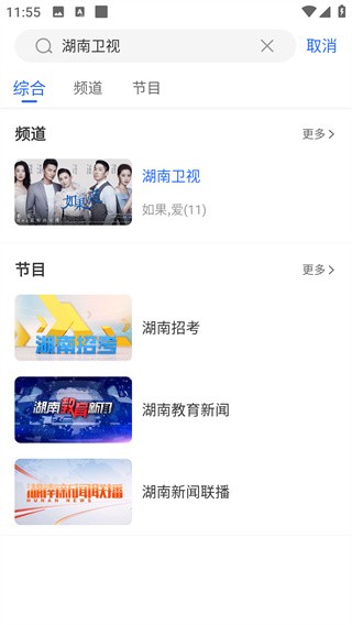 2、比如我们搜索湖南卫视频道,点击上面的搜索框,输入湖南卫视,选择第一个;