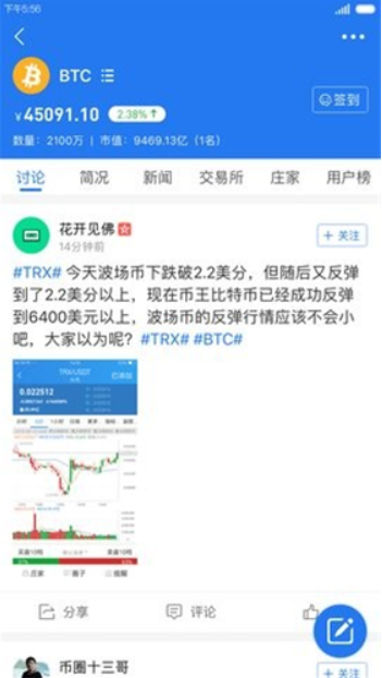 1.查看全球数字货币资产走势及主要热门币种涨幅。