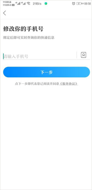 2.点击如图所示的地方绑定您的手机号码,这样您就可以查看与您的手机号码相关的快递包裹,还可以添加亲友的手机号码,帮助亲友检查快递。
