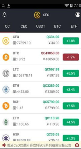 CEO交易所手机下载是一个专注于数字资产交易的平台,它定位于亚洲高端型安全国际站,面向全球提供比特币、以太坊、莱特币等多种数字资产交易服务。该平台使用多重技术安全防护,致力于打造一个金融级别的专业数字资产交易网,为数字资产投资爱好者提供一个安全、舒适、快捷的交易渠道。平台严格审核交易者的身份,保障会员的资金安全,拒绝非实名本人和非法的资金流入,让投资者可以放心交易。