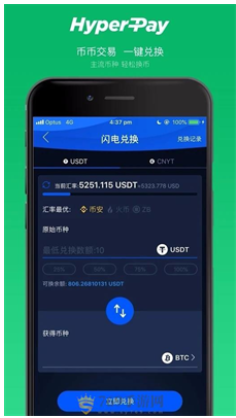 4.兑换:在HyperPay钱包主界面,您可以选择兑换功能,进行数字货币之间的兑换。点击“兑换”按钮,选择需要兑换的币种和数量,确认无误后点击“兑换”即可完成兑换操作。