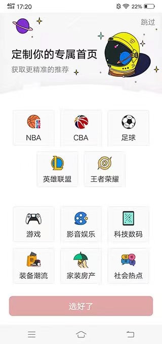 1. 从本网站下载Hupu应用程序并运行该软件。第一次进入软件的用户可以选择自己感兴趣的社区,当然也可以选择跳过;