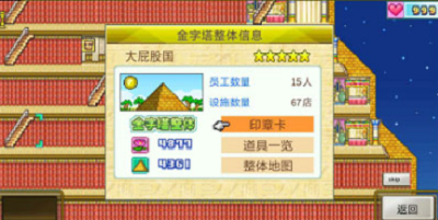 您可以查看金字塔的设施树、员工数量、魅力值和金字塔力量。
