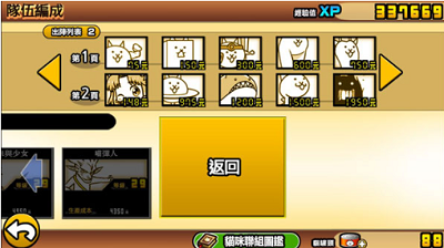 战术要点:使用大量炮灰抵挡敌人的推进,只使用极少量的输出猫进行攻击。这种打法比较注重面子,重启也很正常。