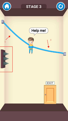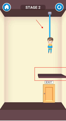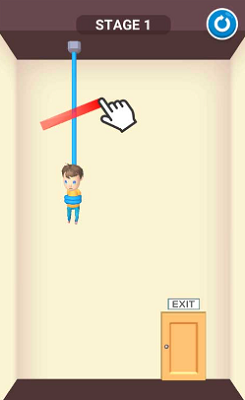 在这个关卡中,您只需将手指滑过悬挂小男孩的绳子即可。小男孩被救出后,会自动走到出口,关卡就通过了。