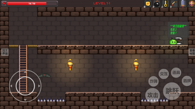 1.左边是控制角色移动,右边是攻击、跳跃、交互、道具。