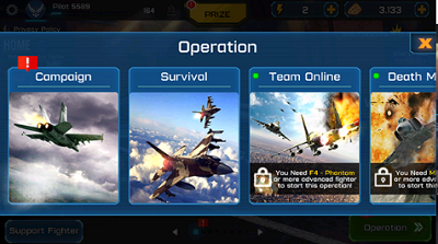 - 完整的空军包含基于真实现代原型飞机的20多个战斗机