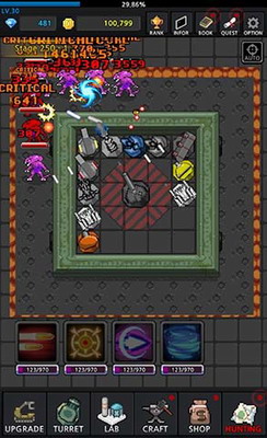 3.在战斗中不断利用积累的资源建造和收集各种炮塔。