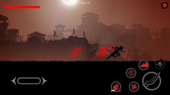 3.控制忍者角色。简单的虚拟摇杆控制可以解锁不同的技能,以及游戏中不同类型的武器、道具、装备和真实的刺激。