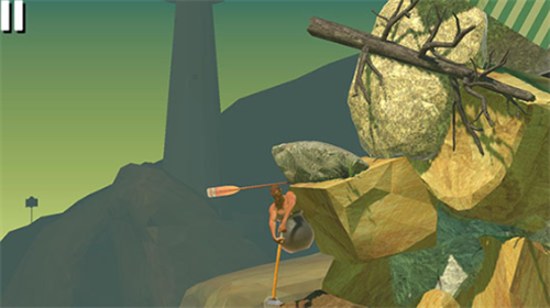 1.玩家控制一个看似坐在罐子里的人,拿着锤子往上爬。操作极其简单。