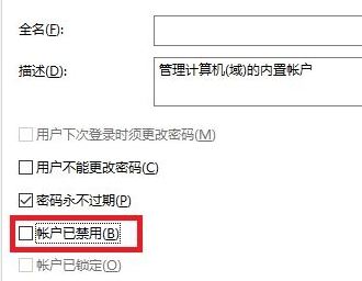 3、打开计算机管理之后,依次点击:本地用户组——用户——双击Administrator——账户已禁用的√点掉,如图: