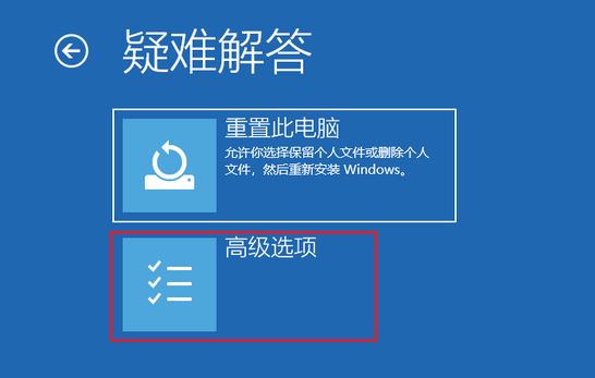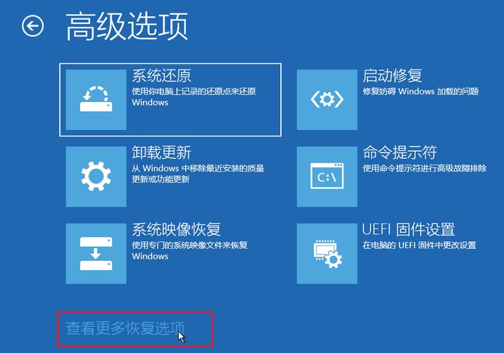 2、点击”高级选项”>”疑难解答”>”高级选项”可以显示修复系统相关的功能菜单,如图: