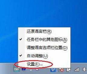 1、在这个输入法图标上面点击鼠标右键,弹出菜单中点击“设置”;