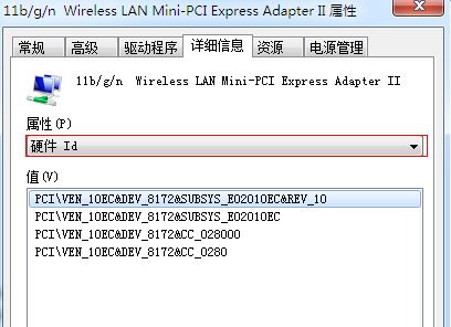 2、点击设备管理器,对设备右键属性---详细信息---硬件ID,如图:
