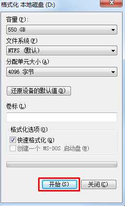 3、然后出现格式化界面,点击开始即可开始格式化,也就会删除所有数据;