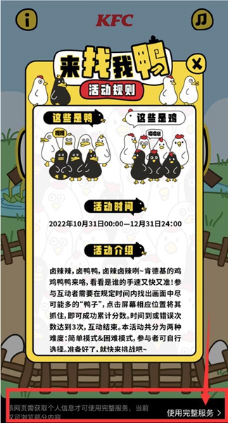 :什么是KFC游戏来找我鸭入口?肯德基和周黑鸭推出了许多全新的活动,包括一个非常好玩的游戏“来找我鸭”,目前正在网上作为一种娱乐活动。很多网友想玩这个游戏,但是不知道从哪里连接。别担心,边肖已经在这里为你准备好了。