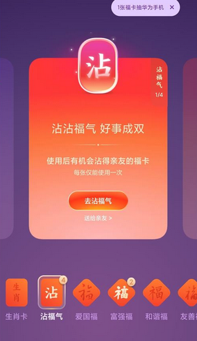 支付宝必须赢得3张万能祝福卡或dip卡。