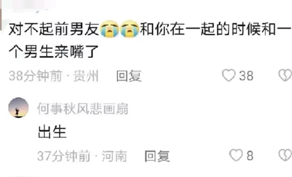 这个梗的原因是,在Tik Tok的评论区,一个女孩吻了另一个男孩,尽管她有男朋友。这时一个叫“有什么伤心的秋风画扇”的网友告诉她“生了”,于是被网友恶搞,成为新的尴尬词。