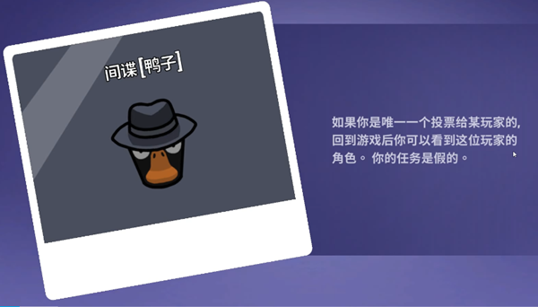 杀鸭间谍是鸭营里的一个信息位。其技能效果类似先知。开会可以看出一个人的真实身份,效果不错。你可以通过和队友的配合轻松战胜敌人。下面小编给大家介绍一下这个职业的游戏攻略。