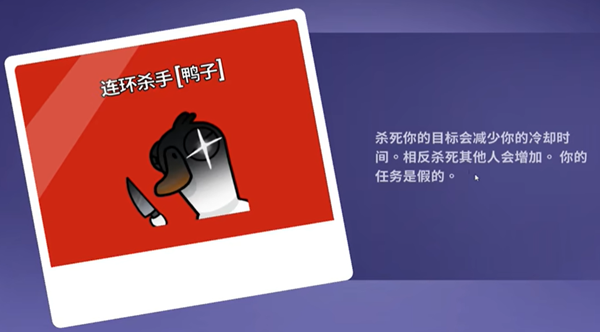 3、连环杀手技能:杀死你的目标会减少你的冷却时间,反之杀死别人会增加,你的任务是假的。