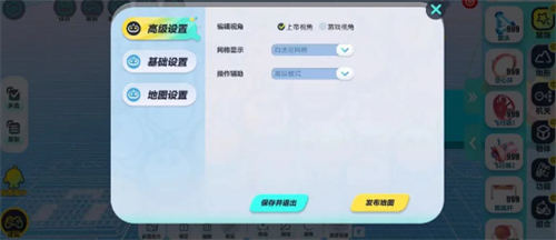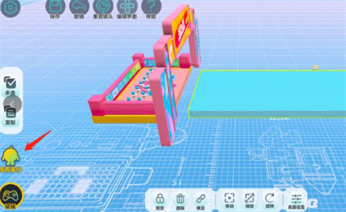 1、游戏视角:点击进入“蛋仔工坊”,工坊默认编辑模式为“游戏视角”,该模式下的操作和在派对里游戏时一样,设计师可以通过左摇杆移动,或者单指拖动旋转视角。