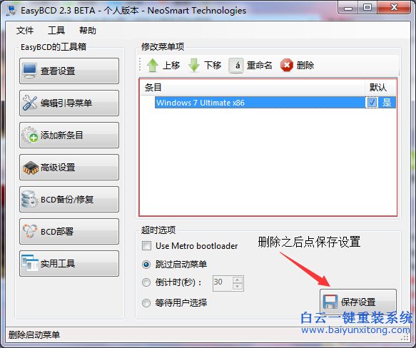 保存设置之后引导就删除完成了,再开机的时候就不会出现系统启动项了。