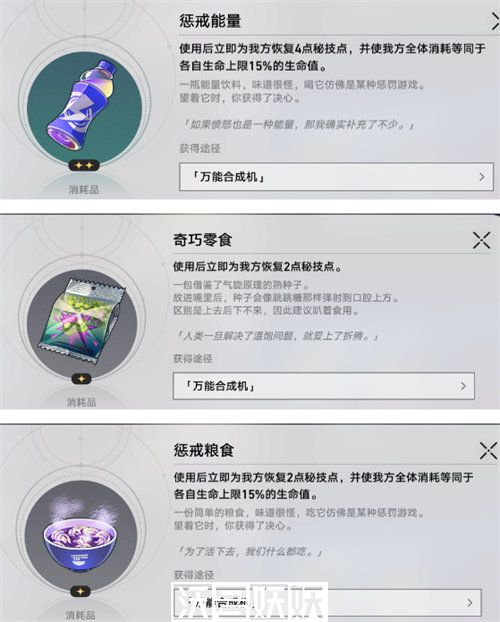 玩家可以通过使用一些消耗品来恢复秘技点,比如:惩戒能量、奇巧零食、惩戒食品等,不同消耗品的恢复点也不同,玩家可以多点赞。