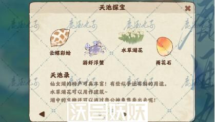 1、打捞湖面:打捞湖面的渔网,收集仙女湖特有的特产。