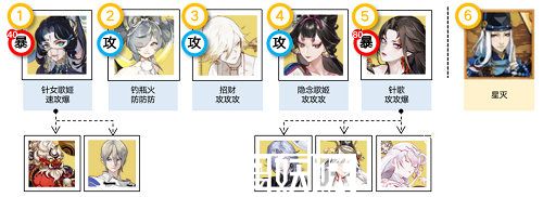 6、【替换】孔雀王可替换为二面佛、大天狗等组别,自带多段输出。铃彦姬可以换月读、铃鹿御前等,伤害主要靠针女和双暴击法氢条件,不过低保绰绰有余