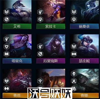 1、阵容由艾希、索卡拉、冰女、宝石女、厄斐琉斯、猪女组成。等级高的话,五费卡,赛恩,奎桑蒂,赛娜随机;