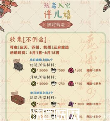 2.建筑建成后,将保留至次日11:00,截止后将回收并兑换成积分。建筑每天都会被回收,但是建造的建筑数量和升级的数量会累积。