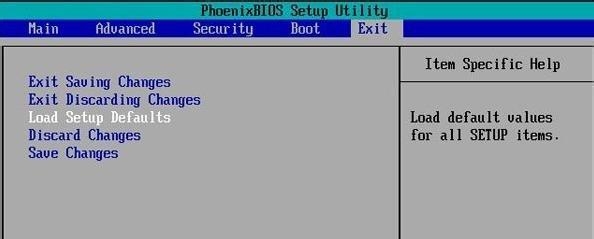 步骤2:选择【退出】菜单下的【加载设置默认值】,按Enter键。选择[Yes]后,再次按Enter。