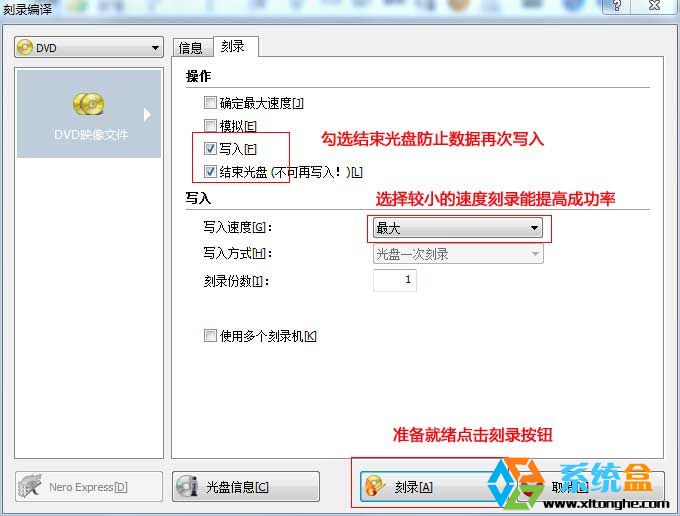 一、使用Nero光盘刻录工具刻录系统光盘;