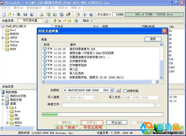 5、待进度条全部走完,消息框显示刻录成功,光盘就刻录完成了。