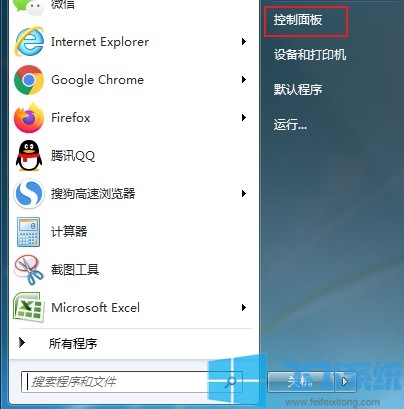 1、使用win键打开win7系统开始菜单栏,在开始菜单栏右侧点击打开“控制面板”窗口