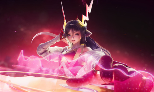 5、回城特效。点击回城之后,瑶会乘坐DJ舞台飞到上空,同时会有两只粉色的小鹿围绕着瑶跳舞,同时地上的粉色圆圈上还会有音浪跳动的效果。