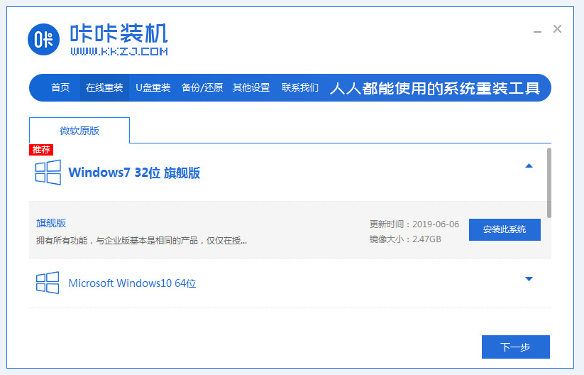 2、在在线重装页面,选择需要安装的win7系统版本,点击“安装此系统”。