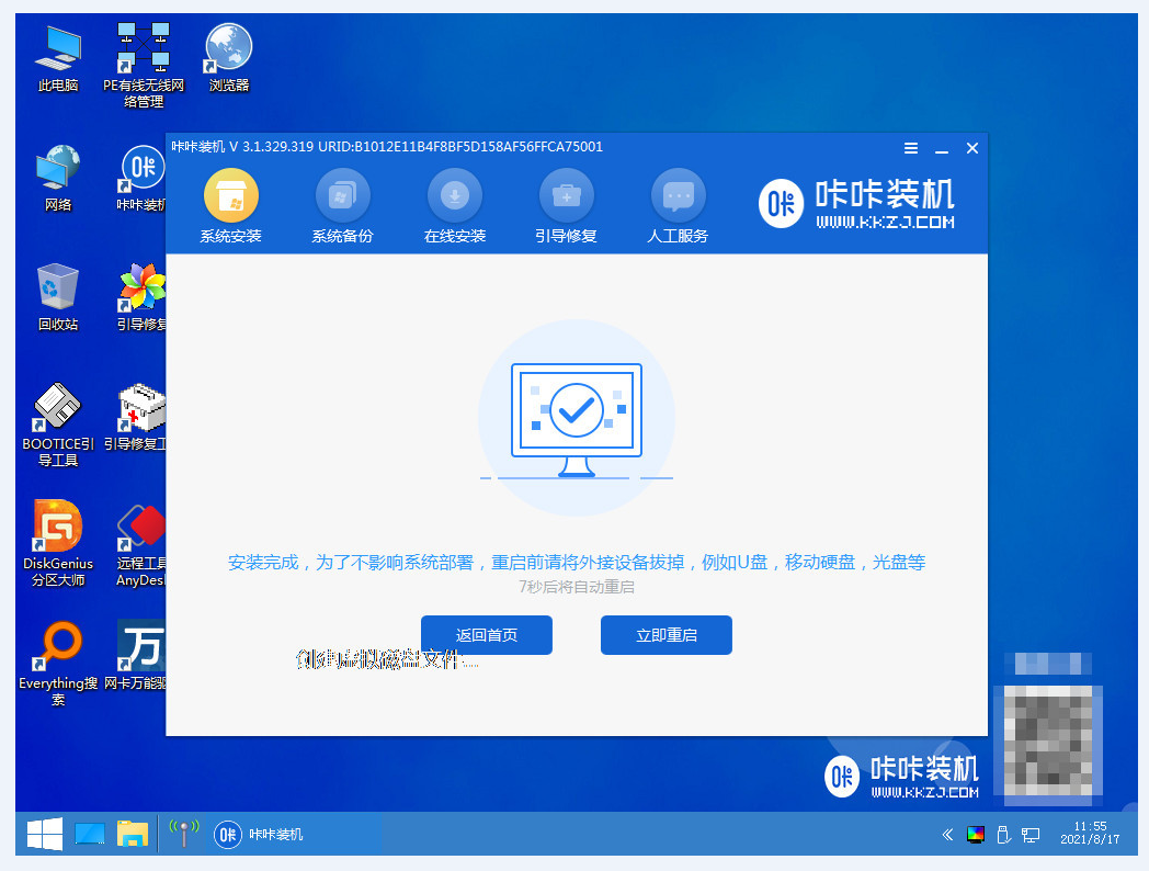 7.然后软件会自动安装系统。安装完成后,单击立即重新启动。