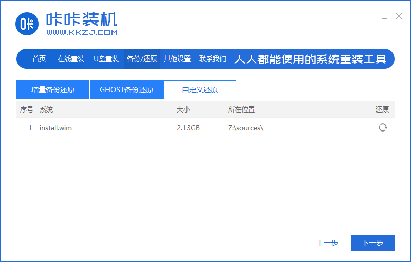 1、首先下载deepin win7系统镜像,打开卡卡卡安装工具,点击备份恢复系统。
