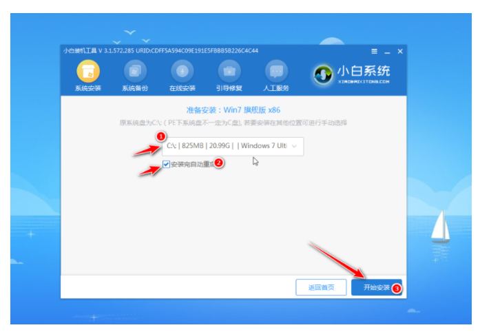 6、建议将系统安装到系统盘C盘,点击开始安装。