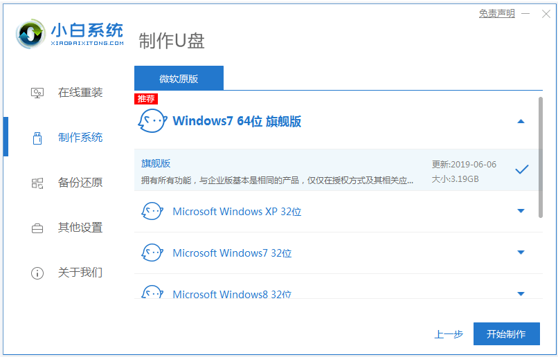 方法二:使用小白制作u盘重装系统win7(电脑进不去系统的情况也适用)