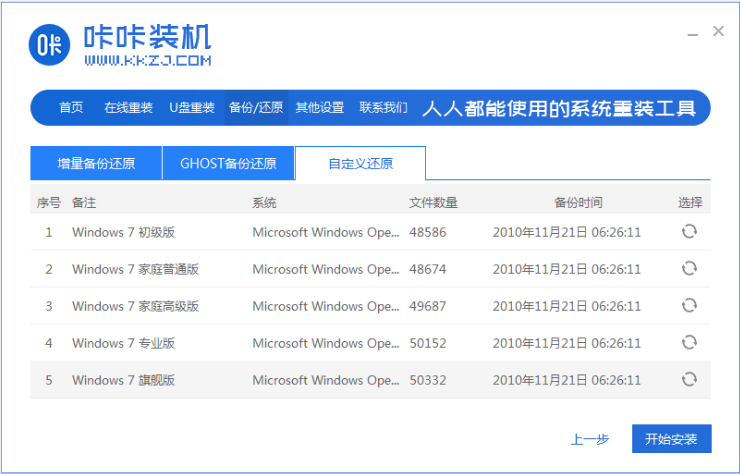 1、首先下载win7专业版系统镜像,解压到电脑非系统盘。安装好Kaka Installer后,一键重装系统软件并打开,点击备份与恢复。